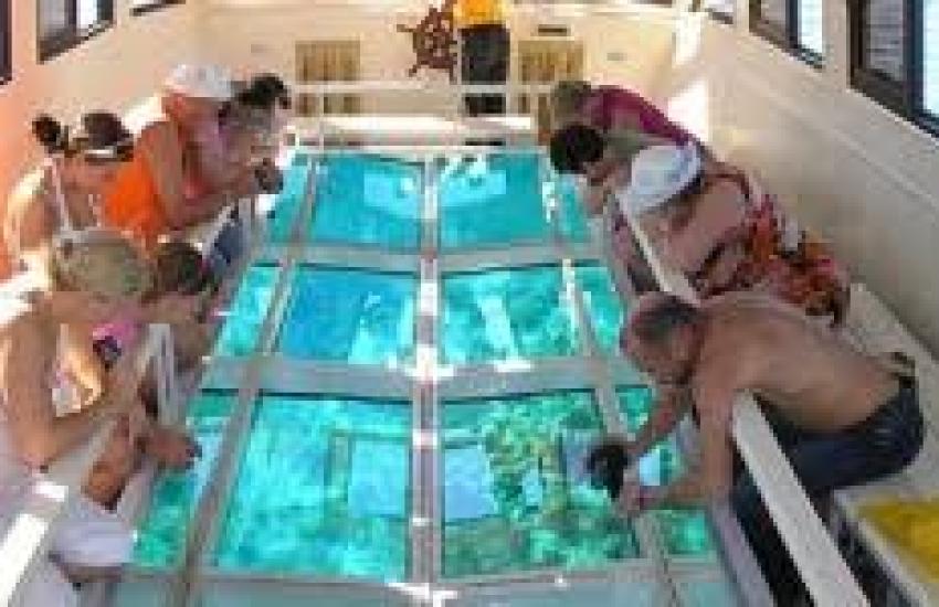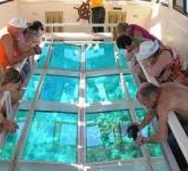 - Продолжением морских развлечений станет прогулка на лодке с прозрачным дном продолжительностью около 30 минут, позволяющая увидеть подводный мир Красного моря;