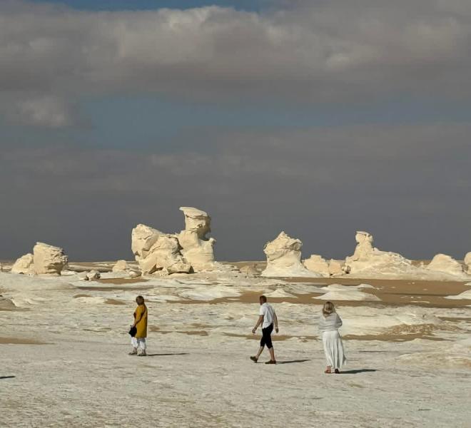 - После завтрака мы отправимся в Старую Белую пустыню, где вас ждёт захватывающее катание по дюнам на сэндборде и отдых у природного горячего источника. Это место подарит яркие эмоции и ощущение настоящего приключения среди бескрайних песков.